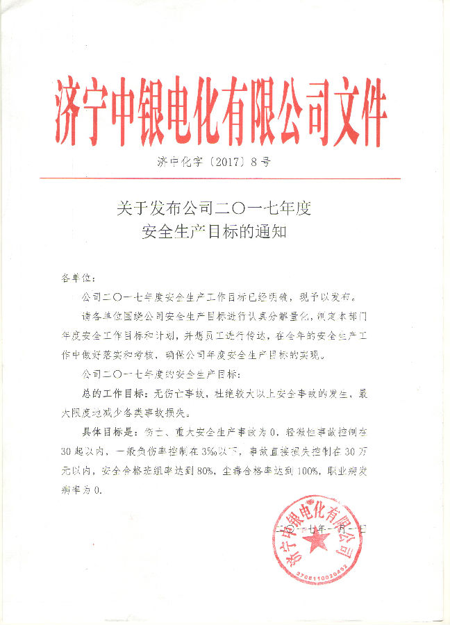 關(guān)于印發(fā)公司2017年度安全生產(chǎn)目標的通知……